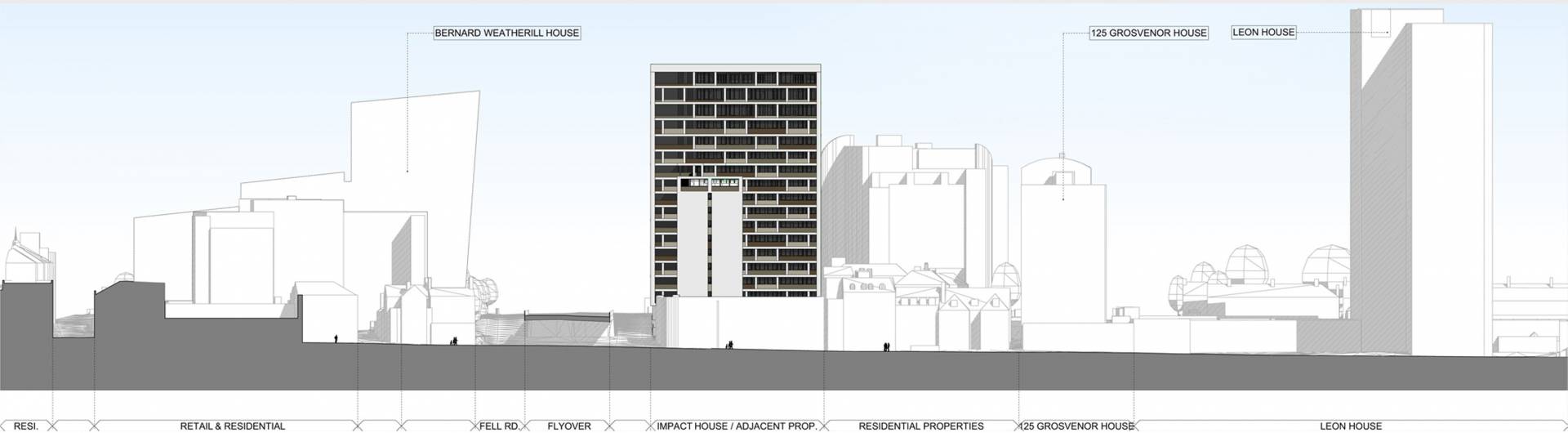 A reuse and extension of an existing 16 storey office block, Impact House was granted permission under Permitted Development Rights. Free access to an all-hour NHS walk-in centre had to be ensured during reconstruction, that made BIM modelling vital from early phrases of planning.