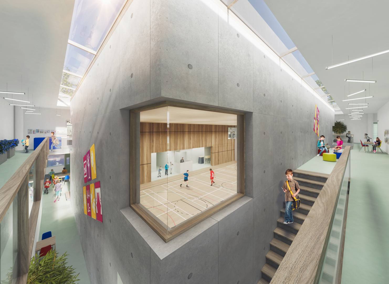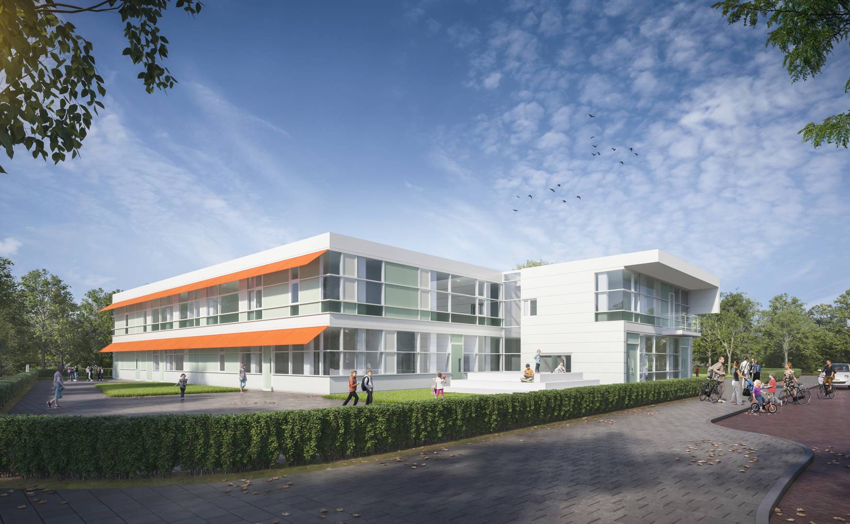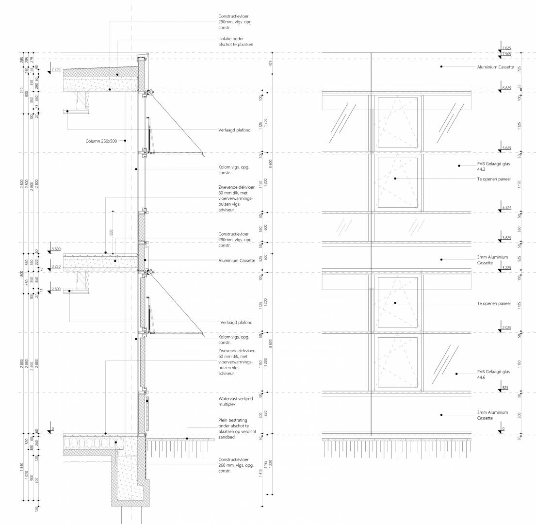 BIM support for a school project planned for The Hague in the Netherlands. Development and documentation for the drawing parts of the design phases: from sketch design to construction plans.