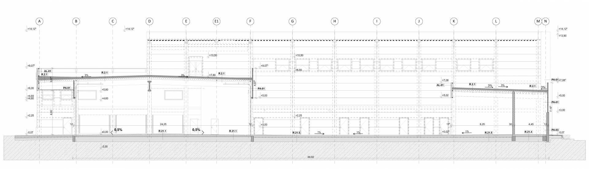 The project area is located in MOL Petrochemicals Ltd. industrial area. The planned building complex consists of a two-storey production hall and an associated three-story fire station. Although the buildings give a uniform appearance, they have different structure and function. ZED Studio participated throughout the whole design process in collaboration with one of Hungary's largest construction companies KÉSZ Group.