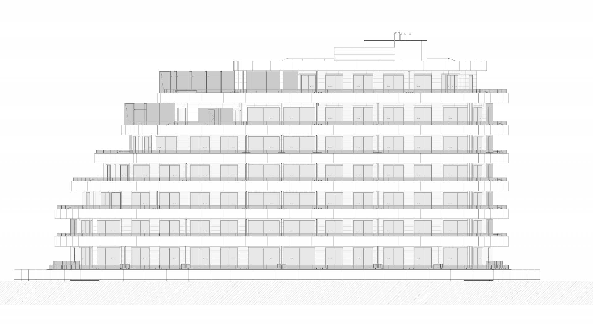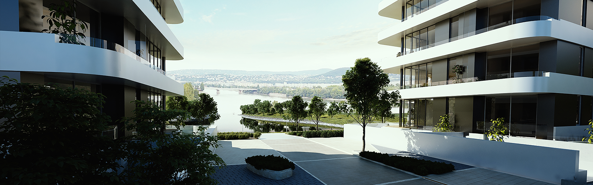 The neo-modernist building, designed by an international team will focus on maximum convenience with smart home functions. The exciting staggered forms of the apartment houses with white ledges overhanging the façades harbours ergonomic apartments and generous terraces with a panoramic view over the Danube and Buda hills. The entire façade is dominated by huge glass surfaces that ensure well-lit interior spaces.