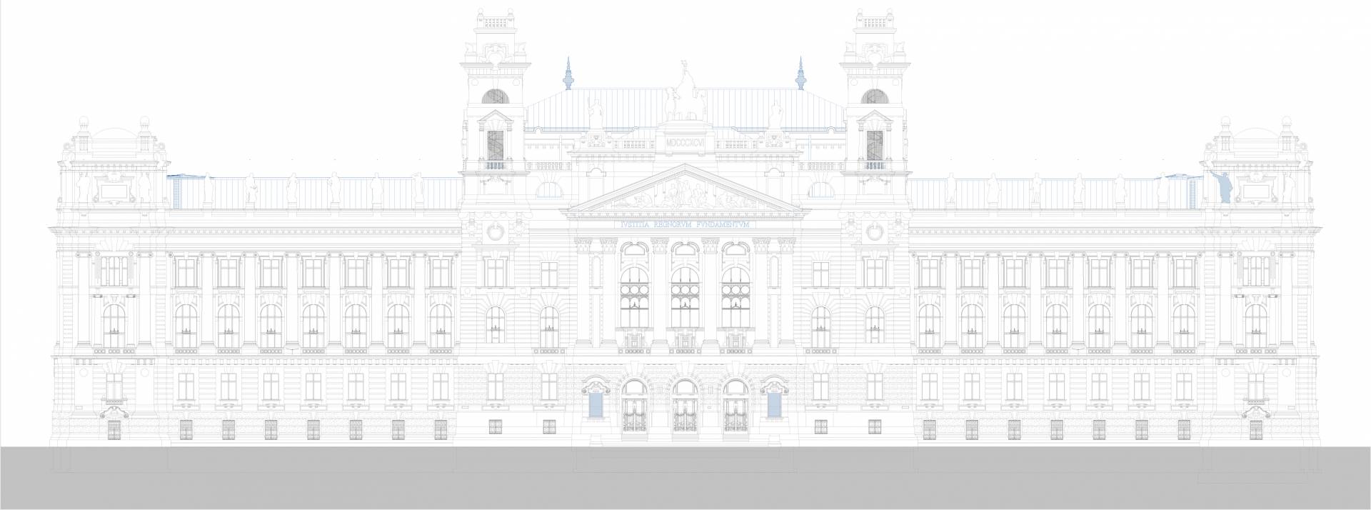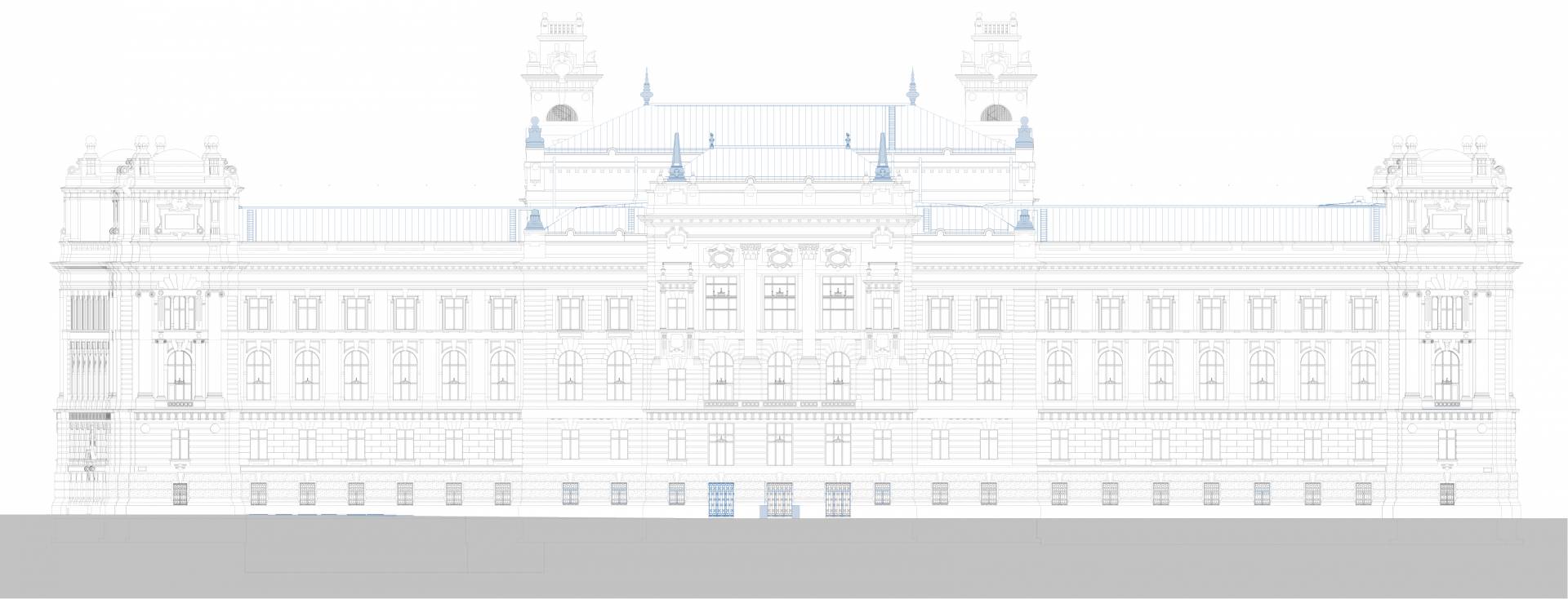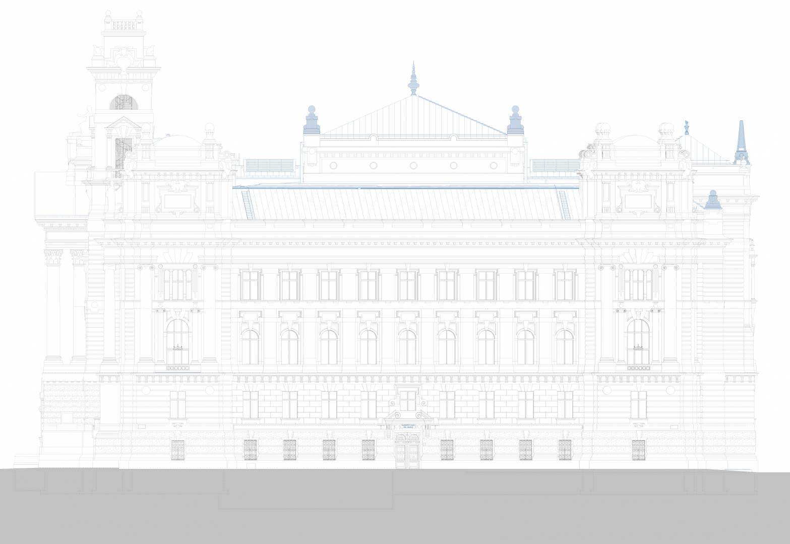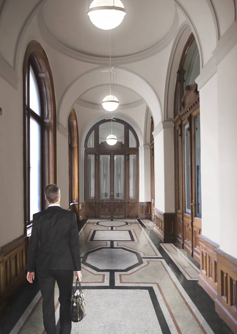 The purpose of the project is to restore the original function and light of the Palace of Justice by protecting, restoring and reconstructing the historical values of the protected building, taking into account the needs of today and the changes in the function. The way to do this is the removal of the subsequent additions, the partial installation of the attic, the one-level substructure of the courtyards, the construction of a transformer basement level, the placement of four new elevators, and the creation of a court function.