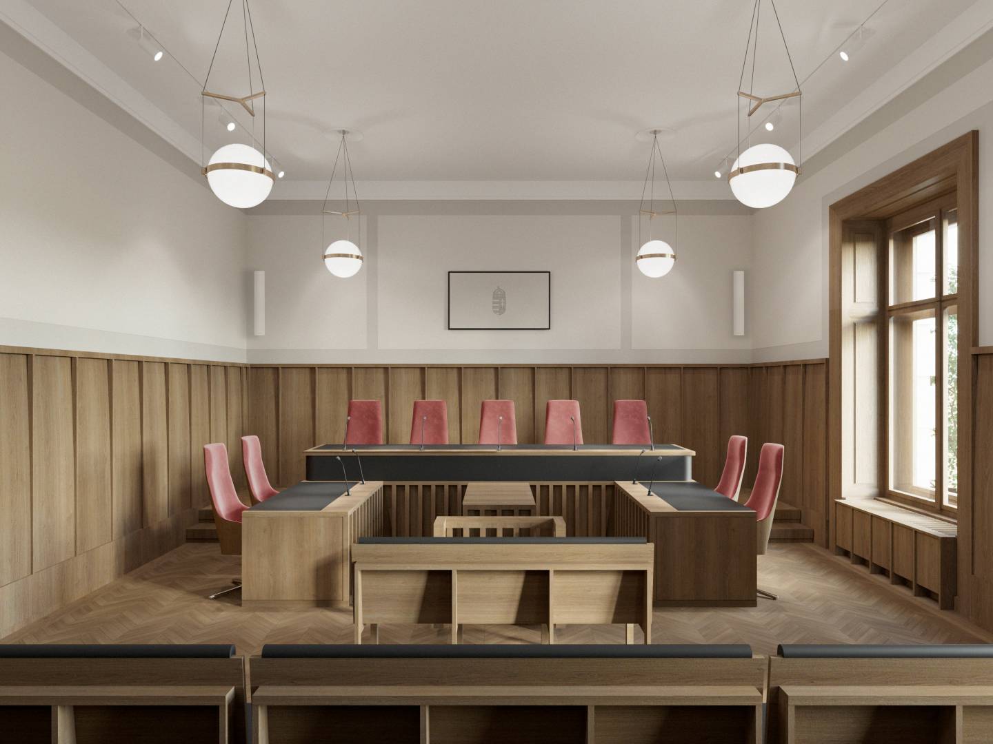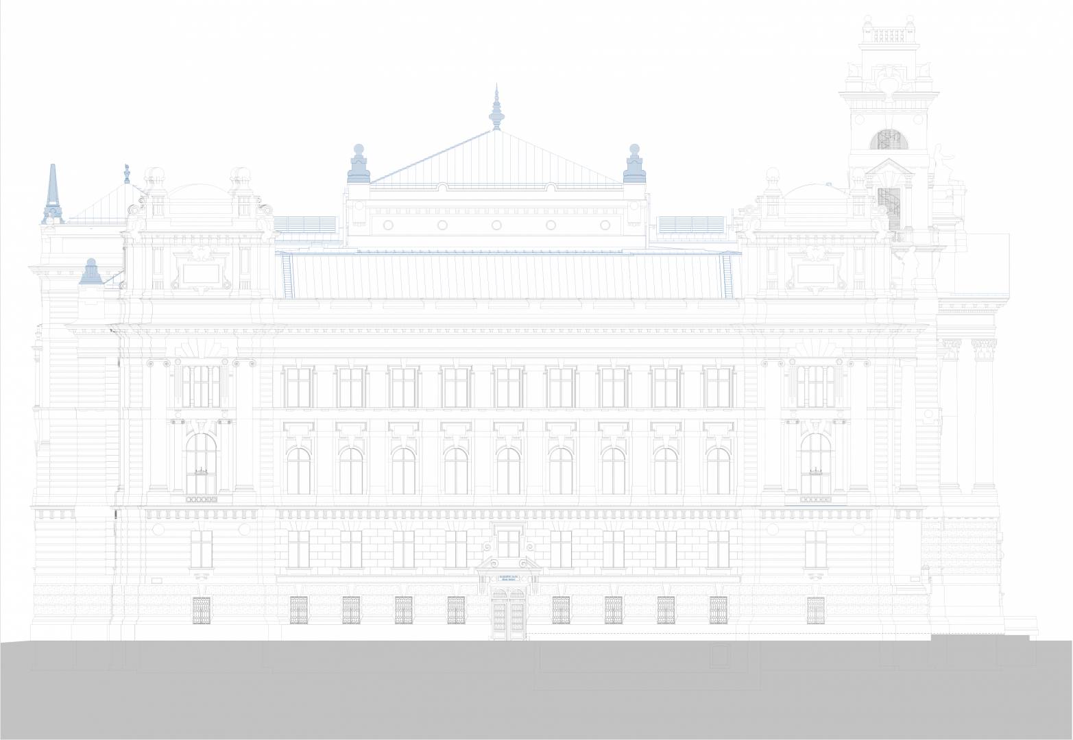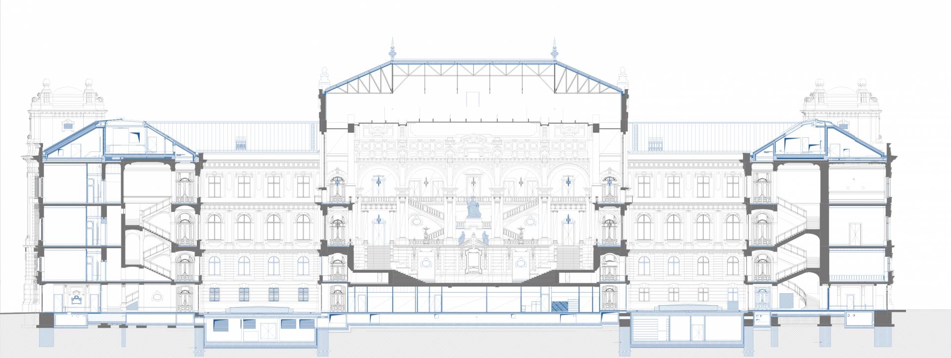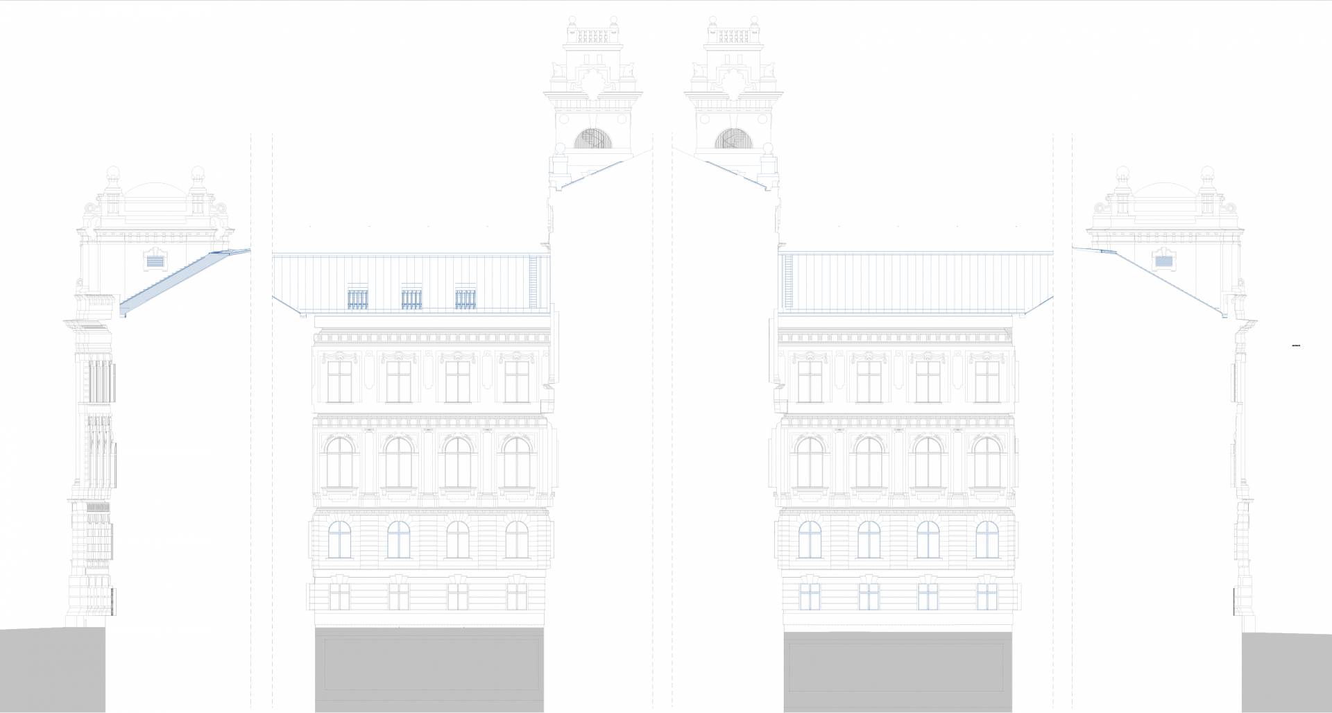 The purpose of the project is to restore the original function and light of the Palace of Justice by protecting, restoring and reconstructing the historical values of the protected building, taking into account the needs of today and the changes in the function. The way to do this is the removal of the subsequent additions, the partial installation of the attic, the one-level substructure of the courtyards, the construction of a transformer basement level, the placement of four new elevators, and the creation of a court function.