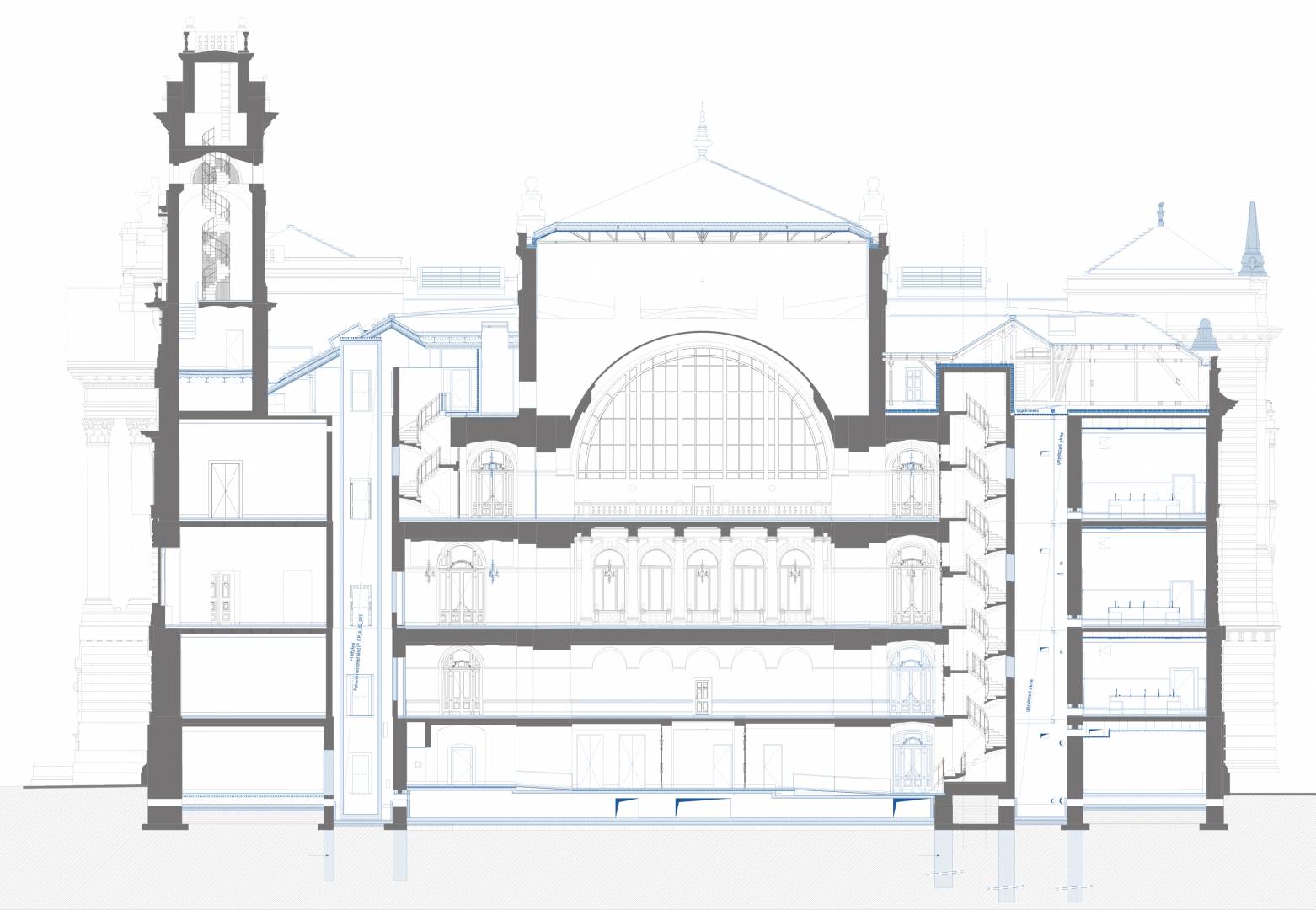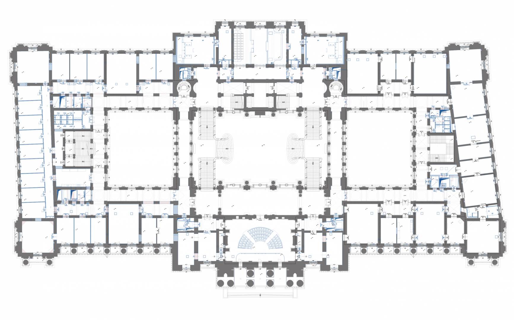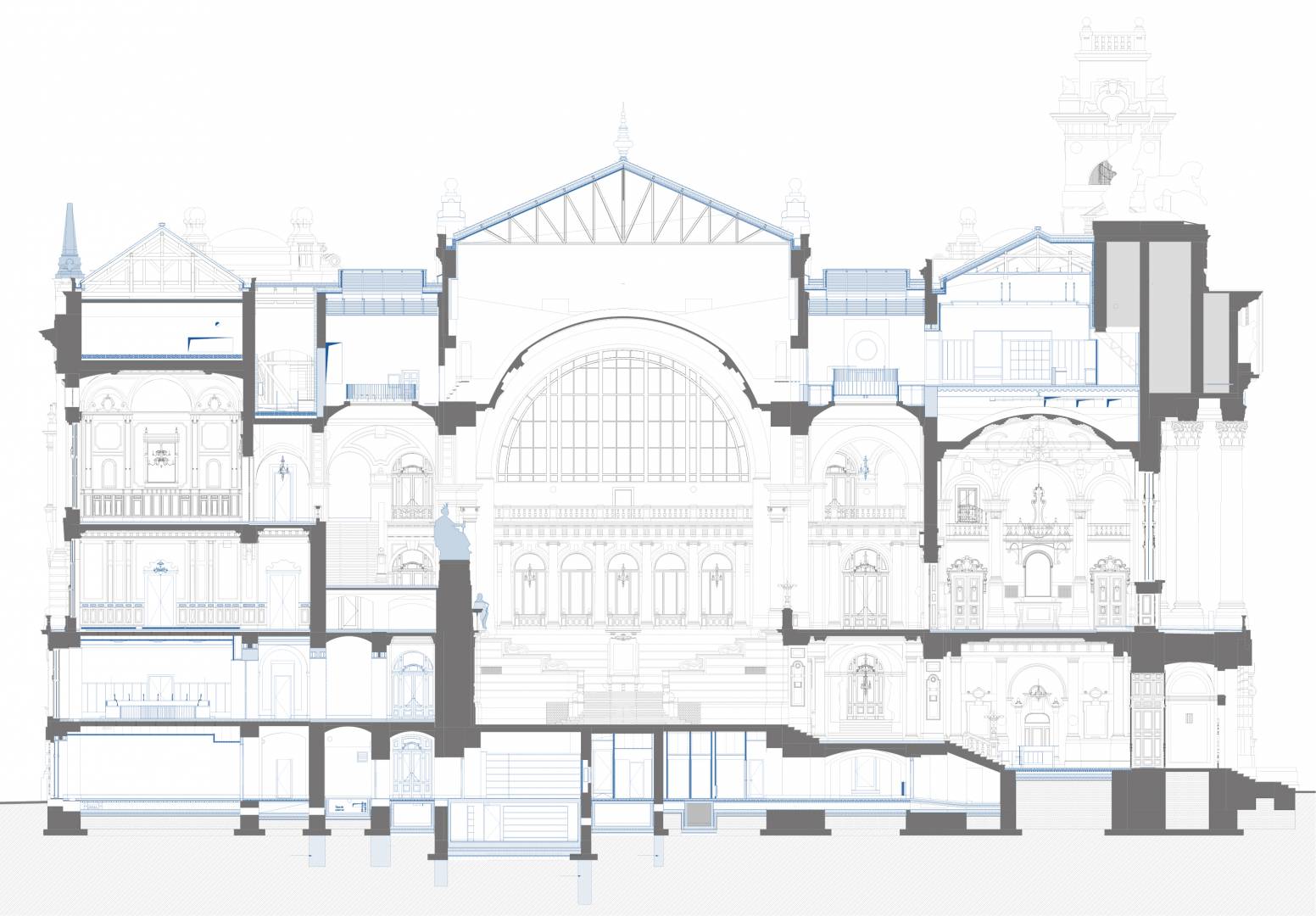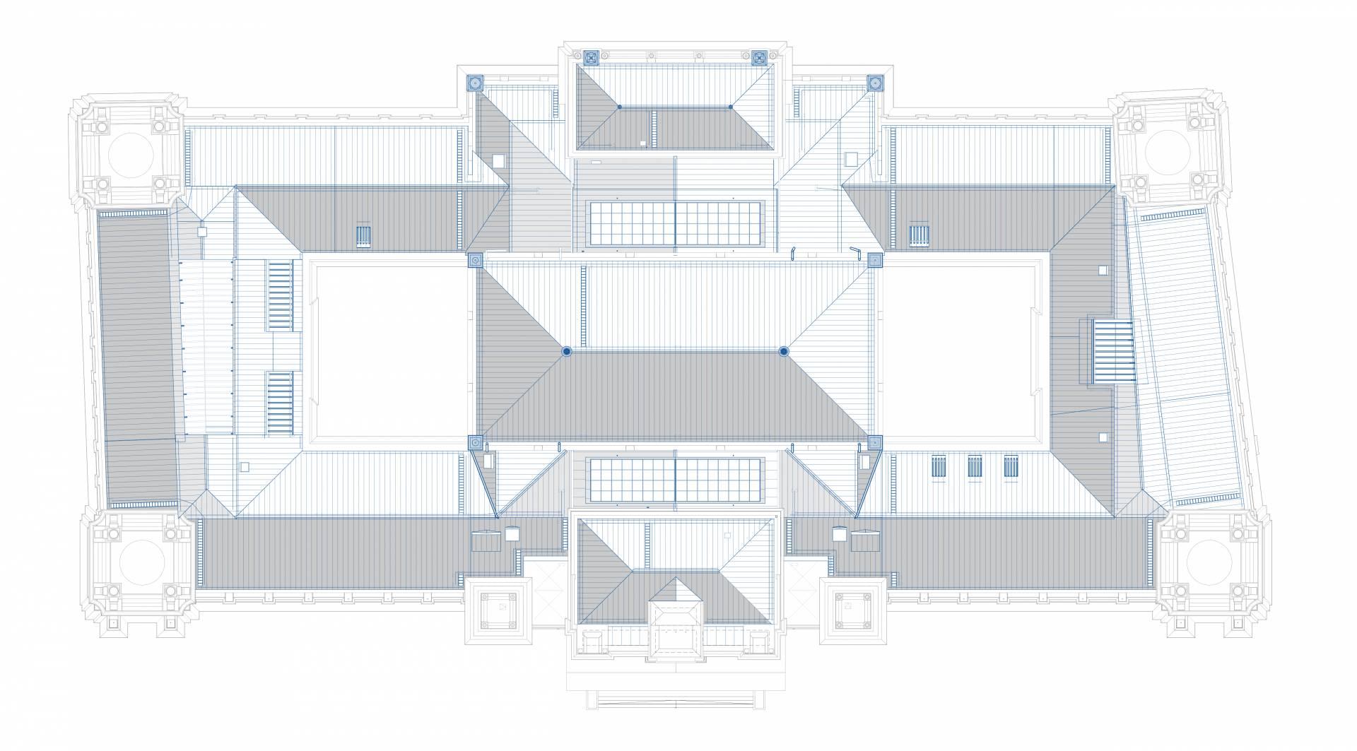 The purpose of the project is to restore the original function and light of the Palace of Justice by protecting, restoring and reconstructing the historical values of the protected building, taking into account the needs of today and the changes in the function. The way to do this is the removal of the subsequent additions, the partial installation of the attic, the one-level substructure of the courtyards, the construction of a transformer basement level, the placement of four new elevators, and the creation of a court function.