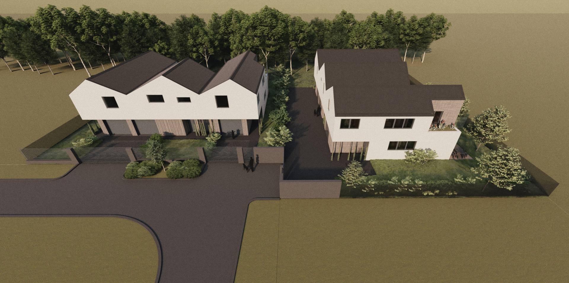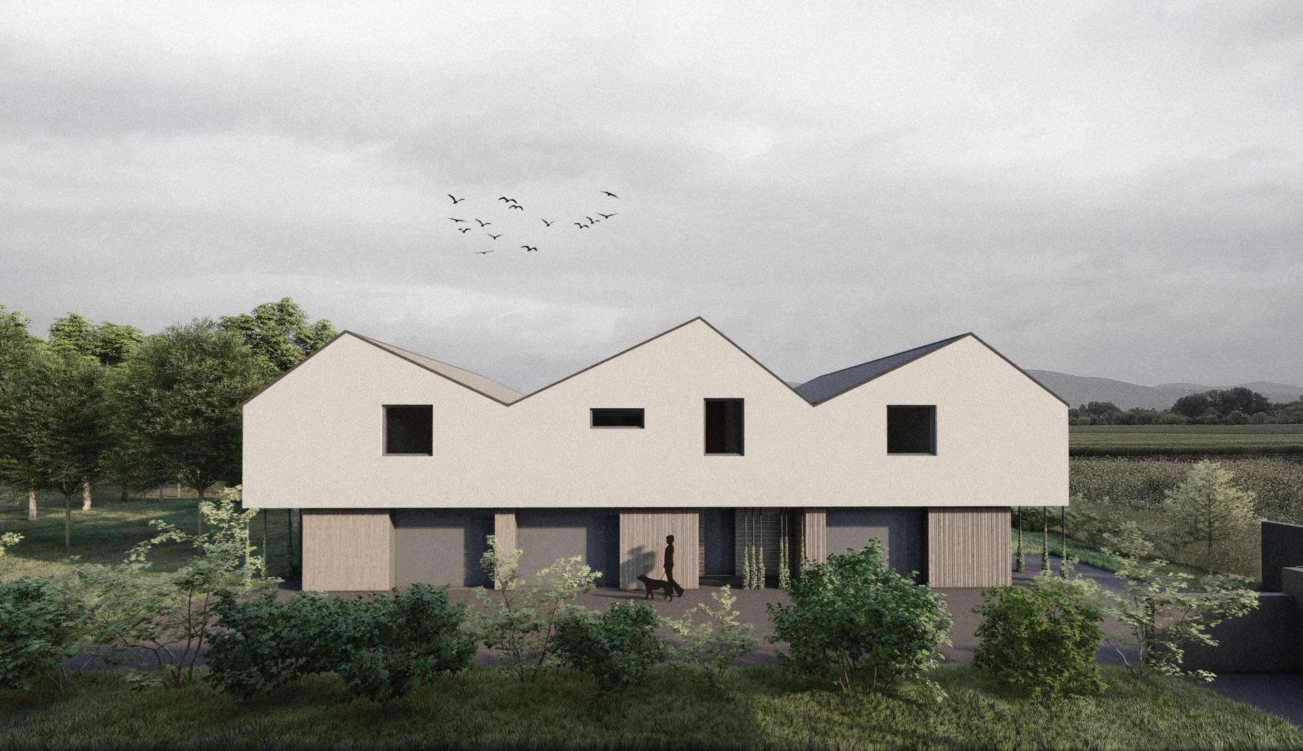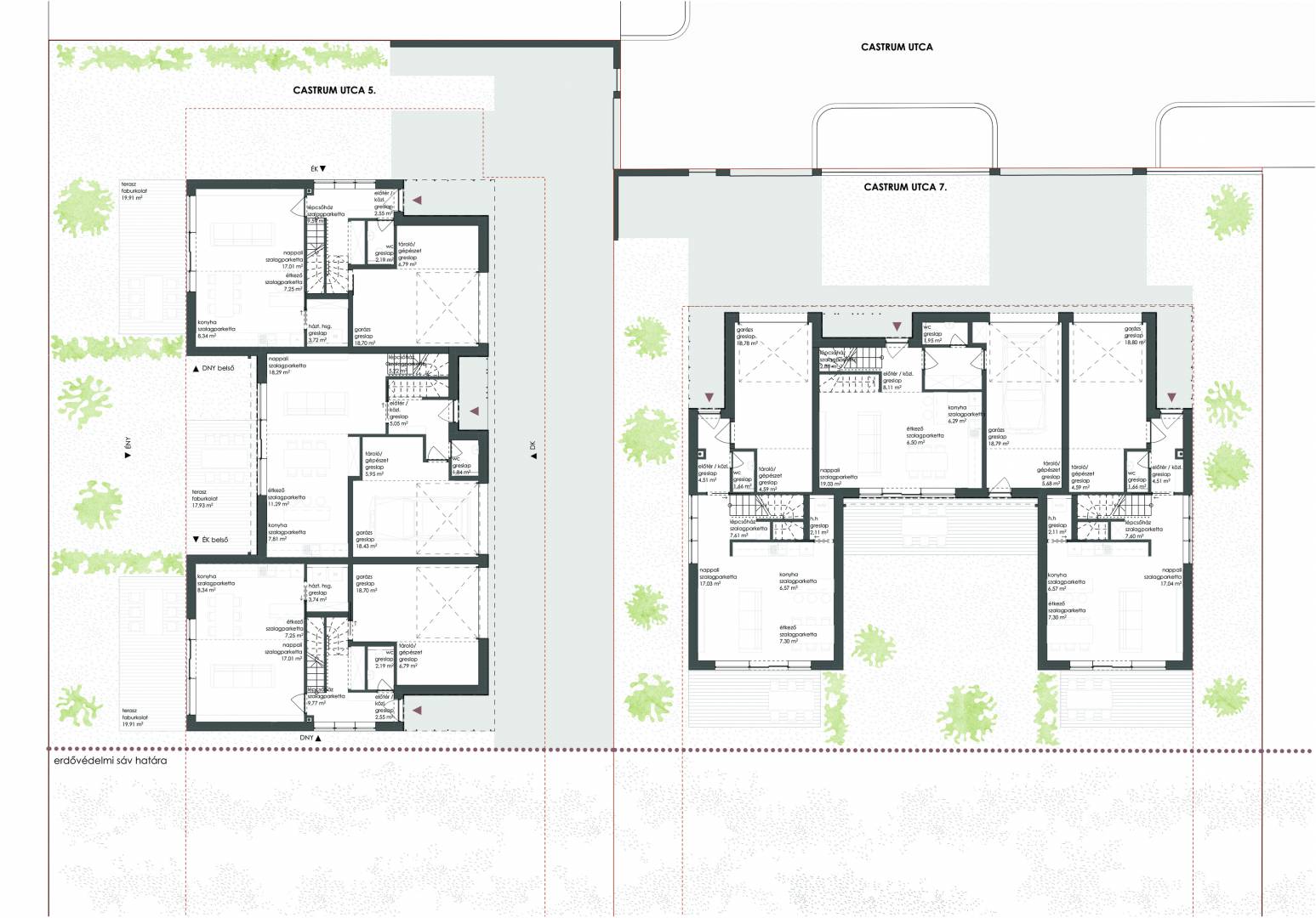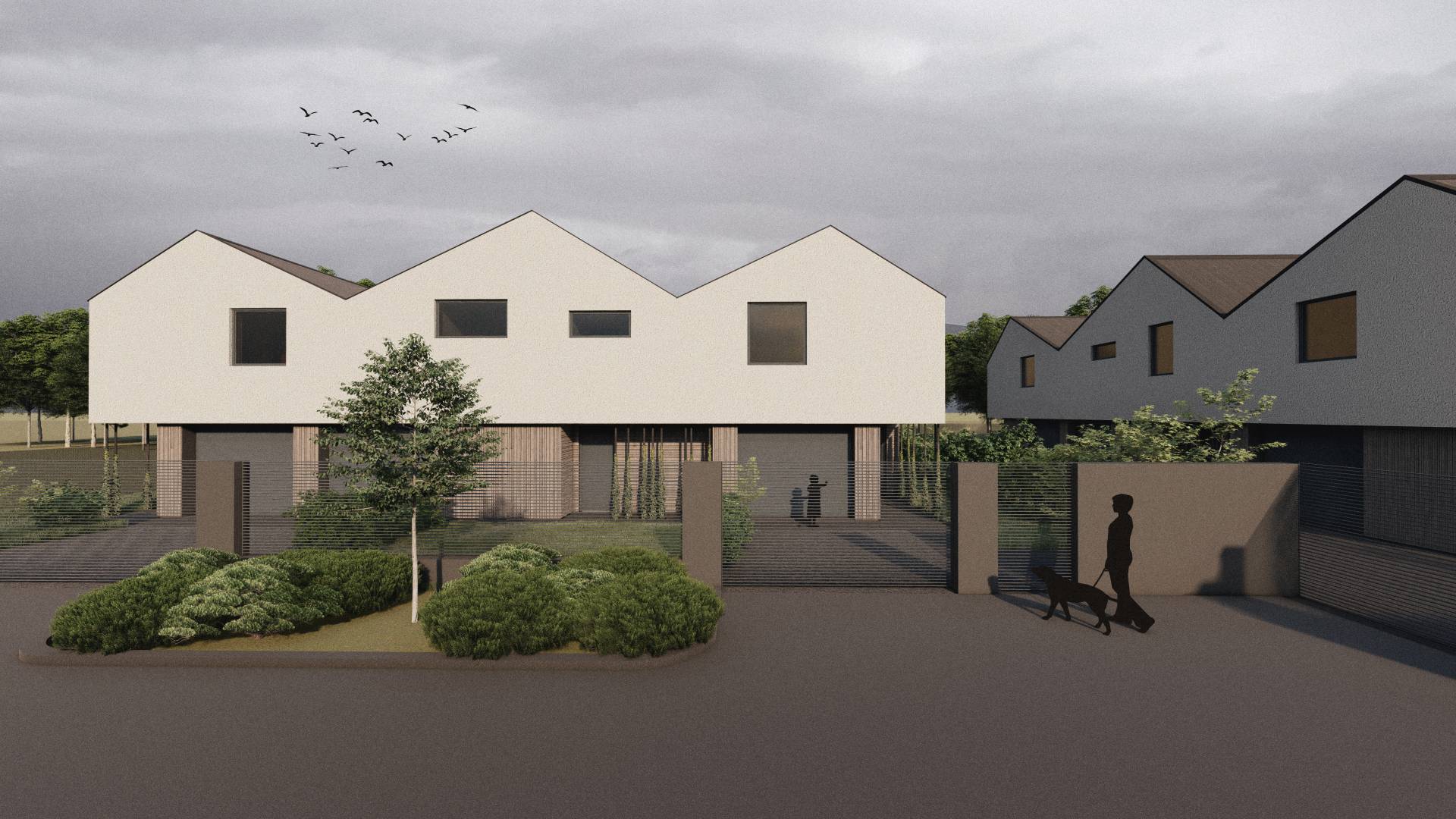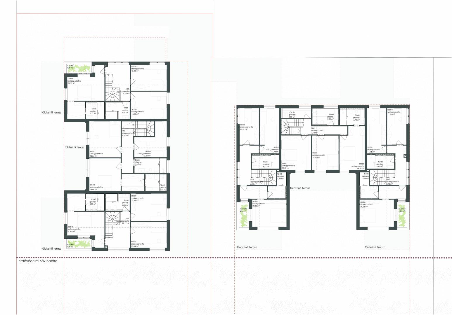 Mindkét telekre egy-egy három lakásos lakóépületet szeretne építeni, azonos építészeti eszköztárral.