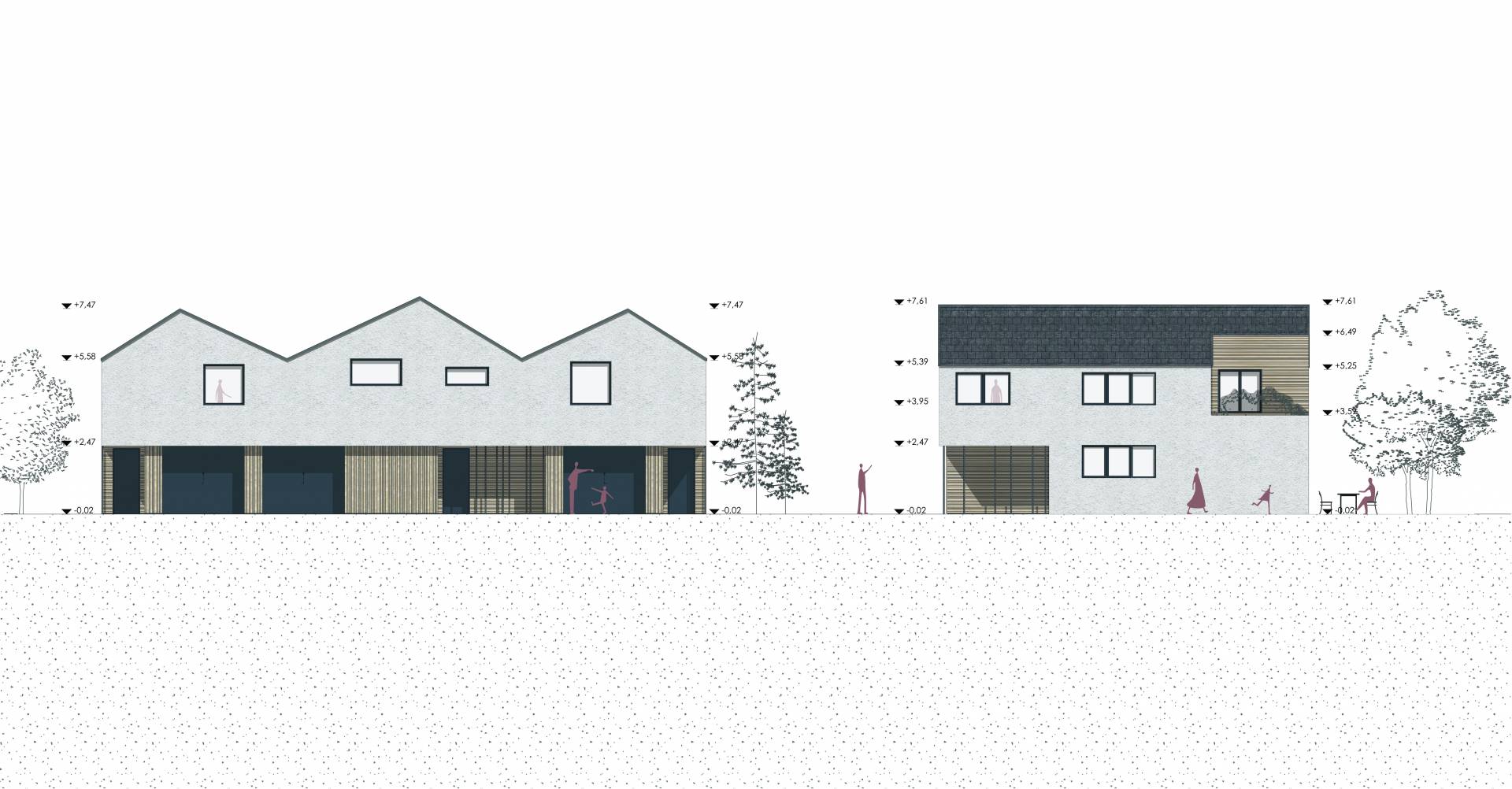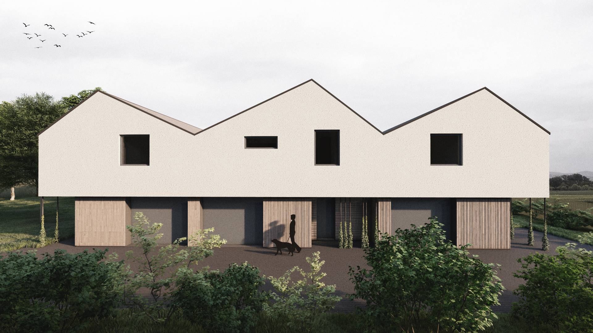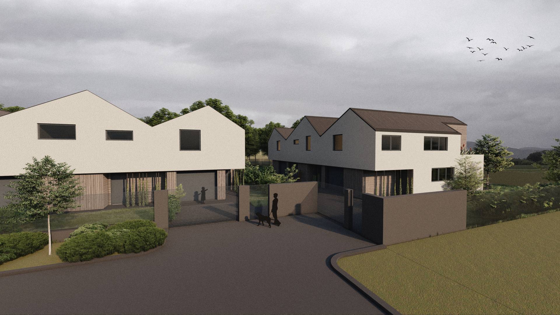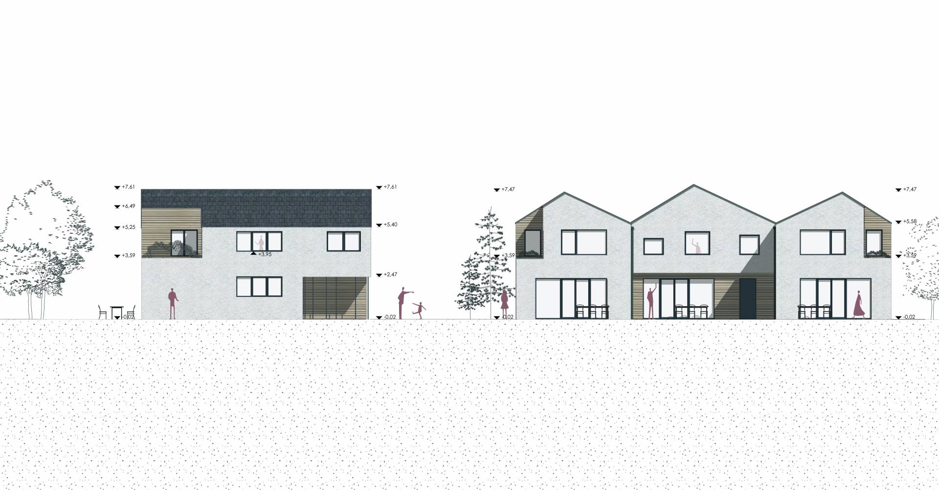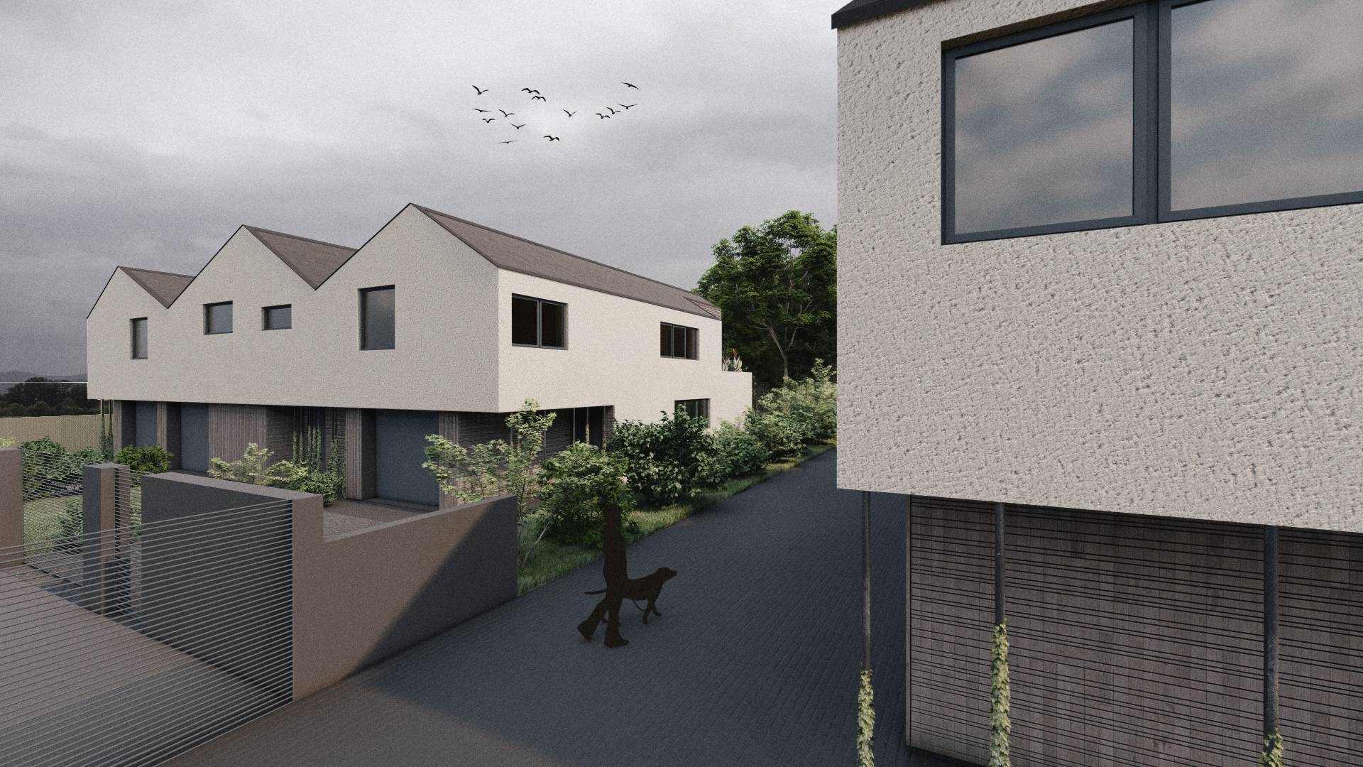 Mindkét telekre egy-egy három lakásos lakóépületet szeretne építeni, azonos építészeti eszköztárral.