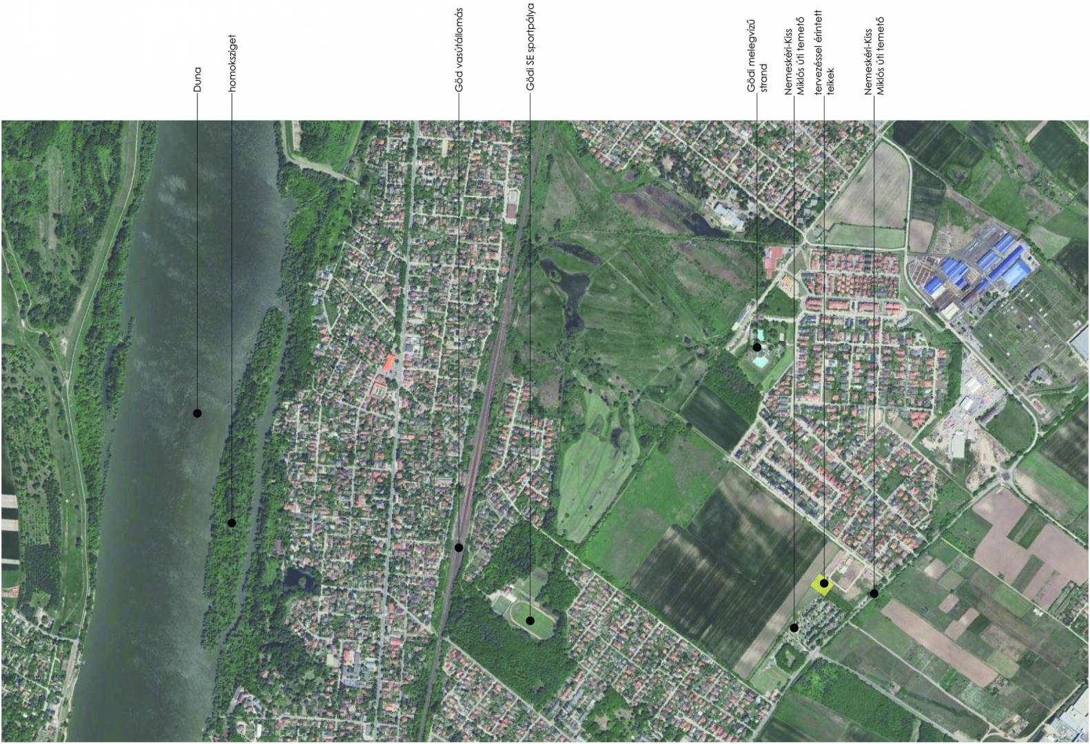 Irodánkat két, egymás melletti telken álló, többlakásos társasház vázlattervének és engedélyezési tervének elkészítésére kérte fel a Beruházó. A társasházak tervezési helyszíne Göd, a Nemeskéri-Kiss Miklós úti temető melletti nemrégiben felparcellázott terület. A telek közvetlen közelében lakóházak (szabadon álló családi házak, és kisebb léptékű társasházak), a temető és a Gödi melegvízű strand található.