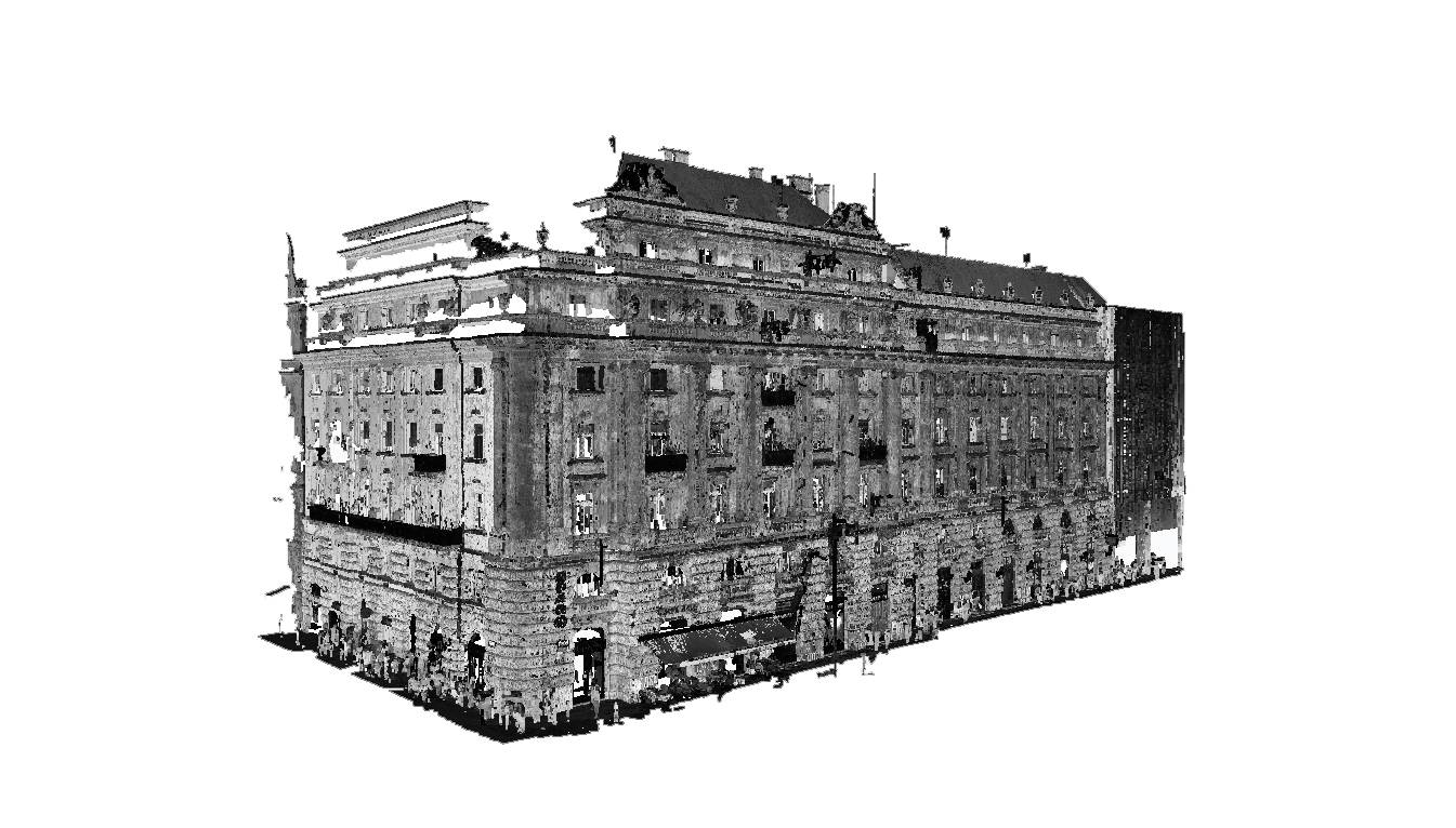 2. Építészeti felmérés: lézerszkenner által felmért 3D pontfelhőből a megfelelő szoftverek segítségével épületszerkezetek háromdimenziós modelljeit nyerjük ki, hozzá építve a már korábban beszkennelt területekhez