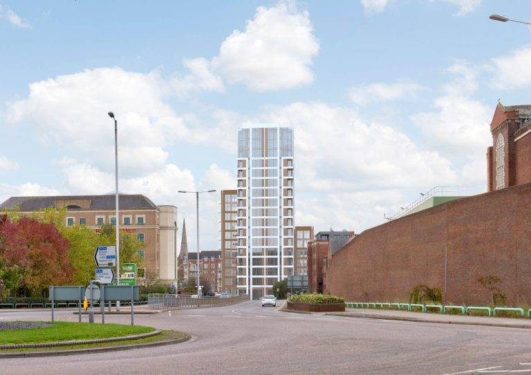 Együttműködés Londoni építészirodával, 103 lakásos lakóépület kiviteli tervezésében.