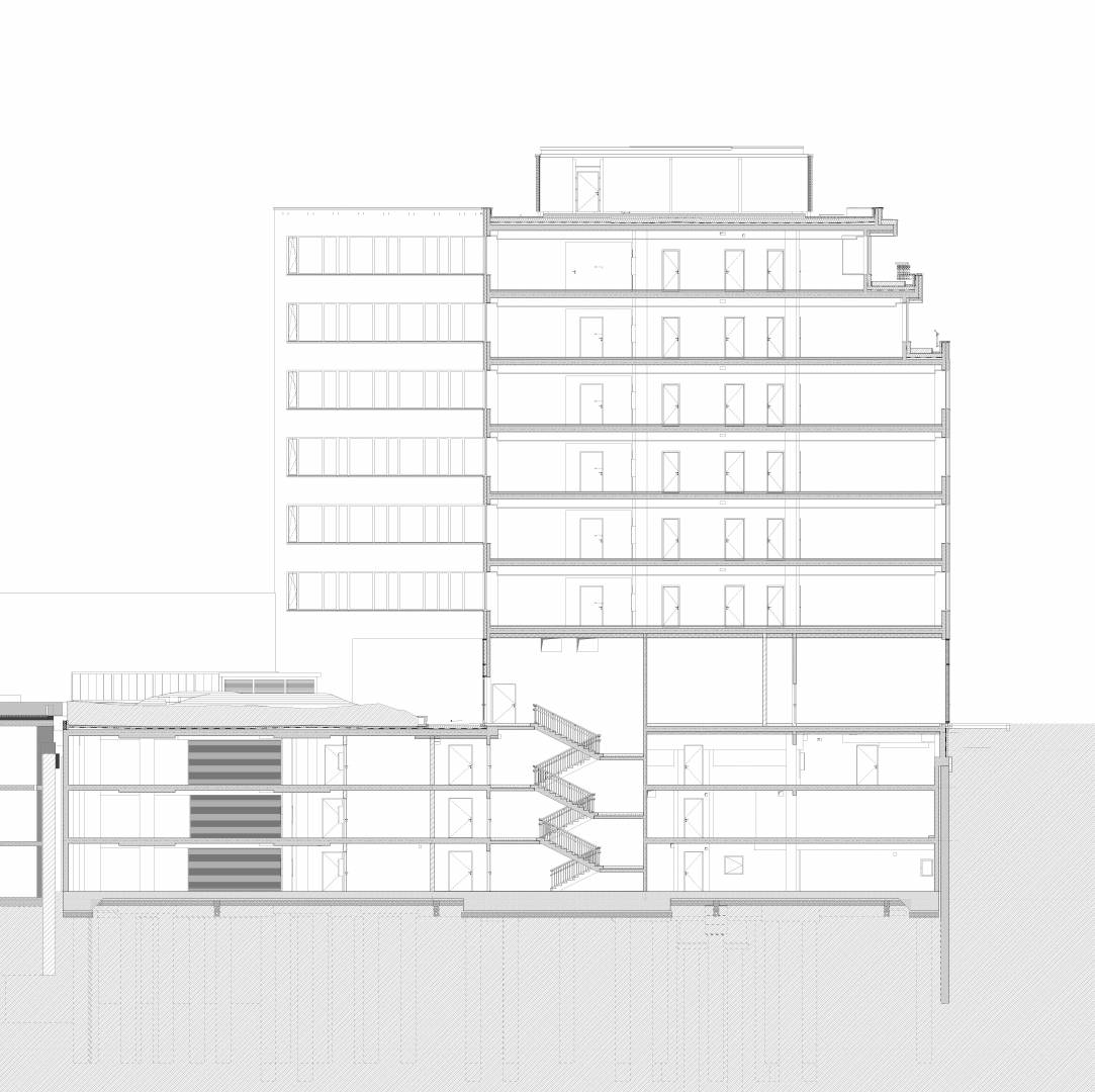 Nordic Light Offices TrioAz épület a Nordic Light irodaház folytatásaként, annak 3. ütemében épül, építészeti minőségében a meglévő épületegyüttes színvonalát követi. Elsődleges tervezői szándék volt a kontinuitás, amiben a meglévő épületegyüttes értékeit emelték át és értelmezték újra az új ütemben a tervezők. Az előző ütemben épült irodaház külső homlokzatának erős horizontális karaktere folytatódik a Visegrádi utcai homlokzaton is, ugyanakkor a függönyfalas rendszer helyett az új épületen a kertből kivetülő sávablakos homlokzat jelenik meg. A meglévő épületegyüttes egyik legfőbb értéke a a passzázsokon át megközelíthető kert. Az épület felső két szintje visszalépcsőzik, az így kialakuló teraszról nagyszerű kilátás nyílik a Budai hegyekre. Irodánk az eredeti tervezőkkel együttműködve a kiviteli tervek elkészítésében vett részt.